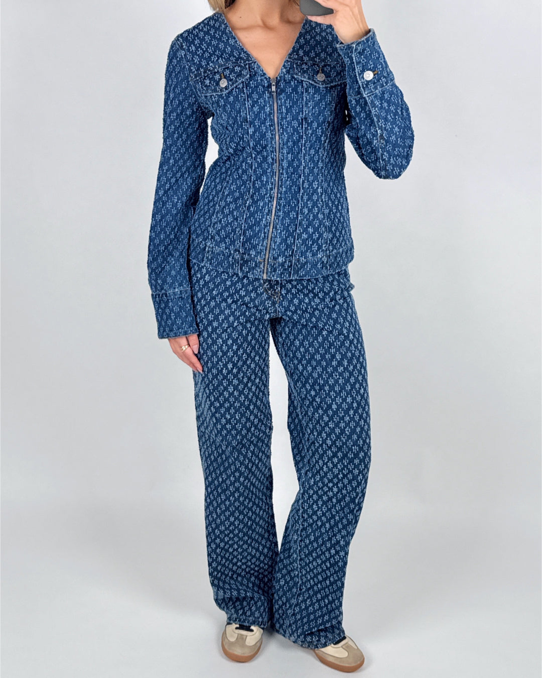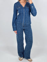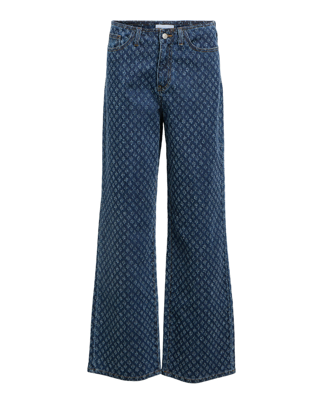 De smukke SAVA denim jeans, blå er de fineste wide leg denim jeans. Bukserne har et smukt mønster i stoffet, som giver en smuk detalje, til den ellers klassiske form.