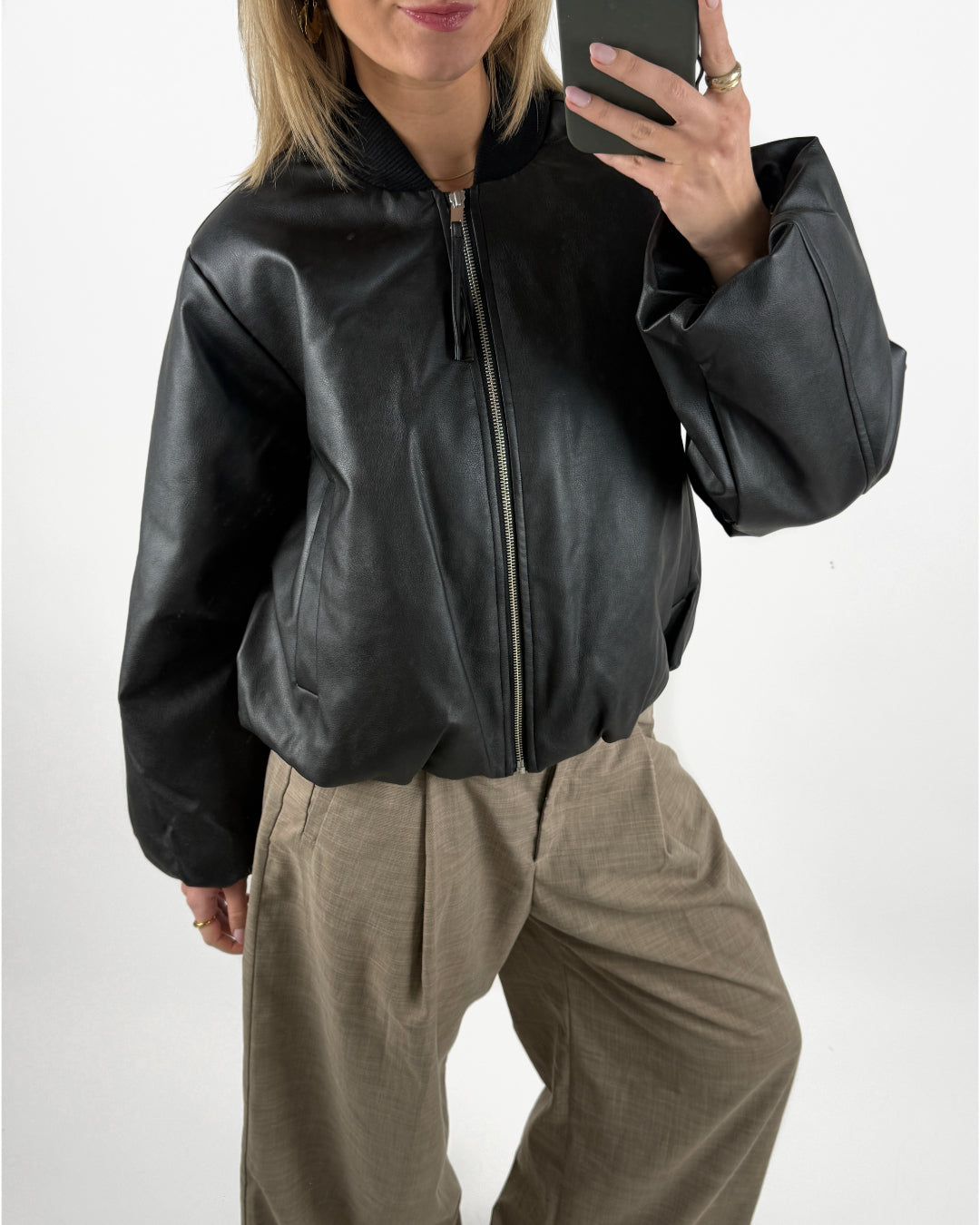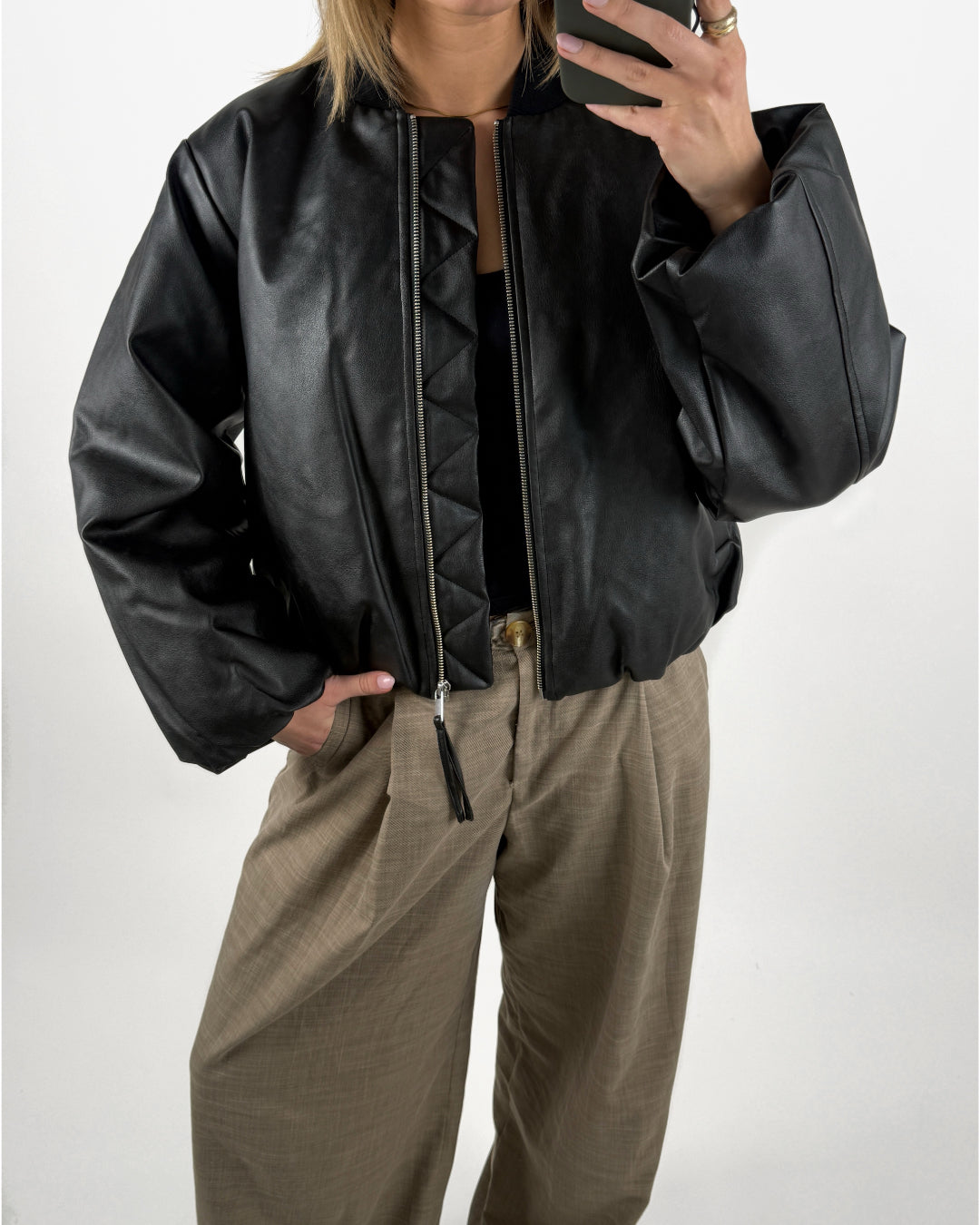 Den smukkeste P.U. jakke er landet på shoppen. TRUDEA jakke, sort har bomberjakke look, i det smukkeste materiale.